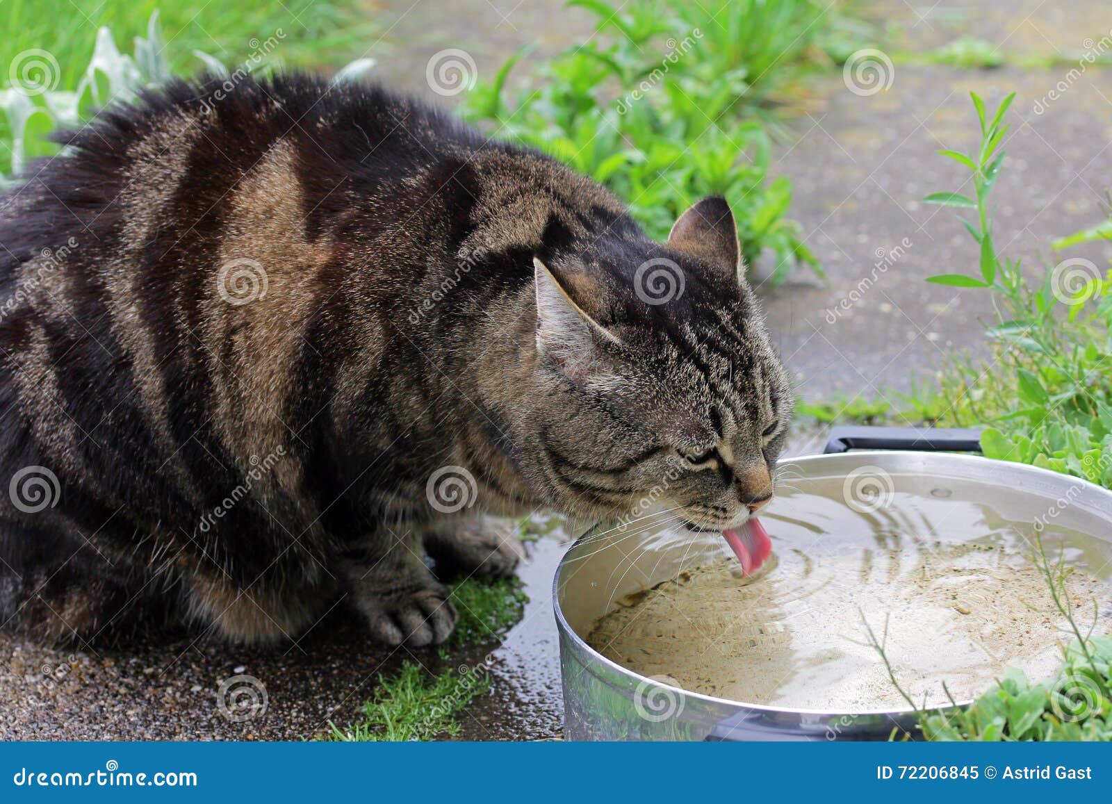 Cat Is Thirsty And Drinking Rainwater Stock Image Image Of Drink Summer 72206845